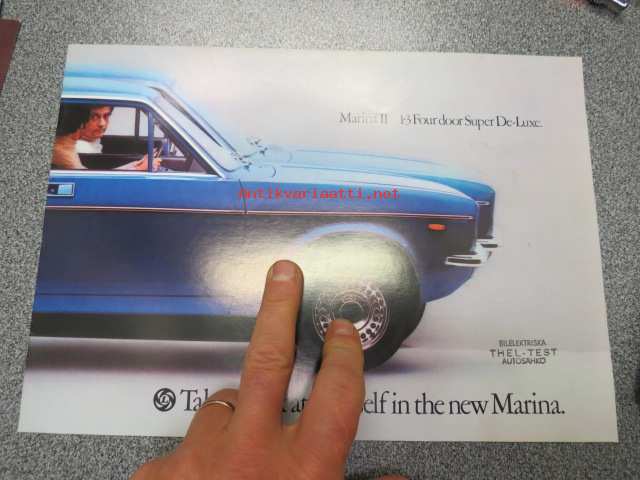 Morris Marina II 1.3 Four door Super De-Luxe -myyntiesite ruotsiksi
