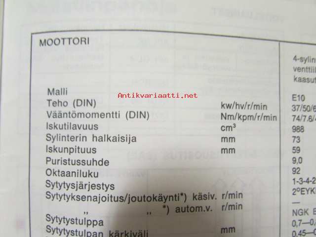 Datsun Nissan N10 mallisarja käyttöohjekirja