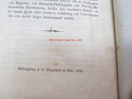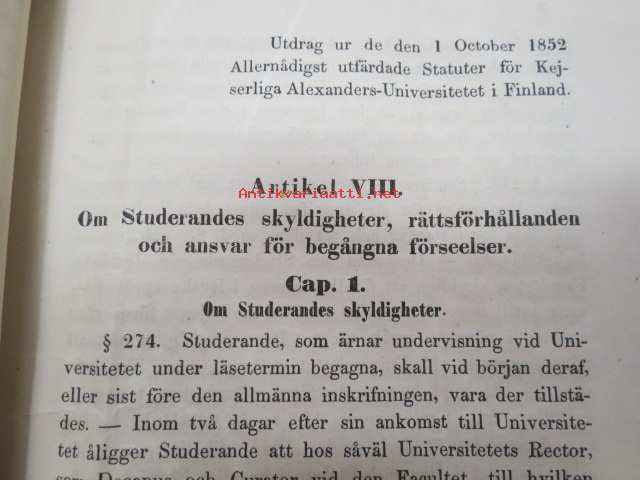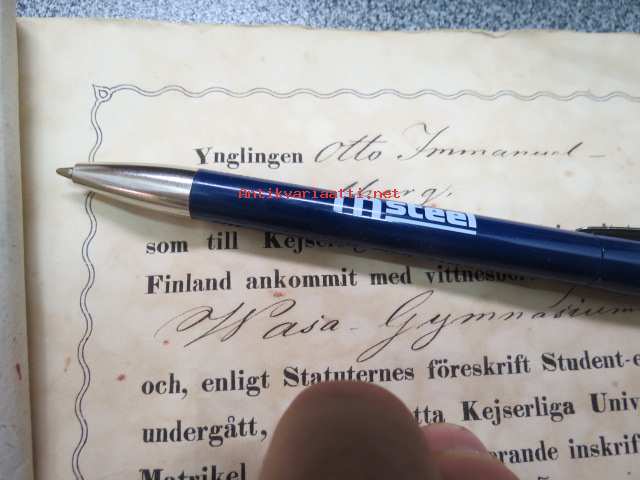 "Ynglingen Otto Immanuel Appelberg som till Kejserliga Alexanders-Universitetet i Finland ankommit med vittnesbörd från Wasa Gymnasium...blifvit såsom Studerande