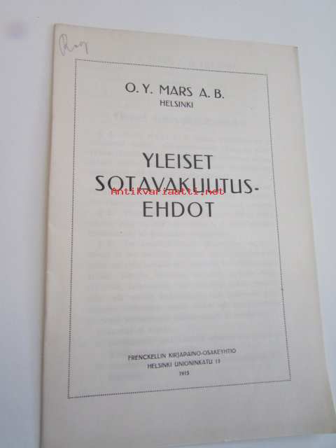 Yleiset sotavakuutusehdot O.Y. Mars A.B. 1915