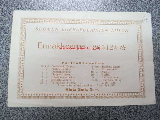 Suomen Liikeapulaisten Liiton Ennakkoarpa nr 256124