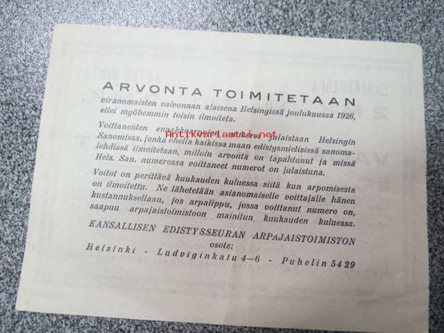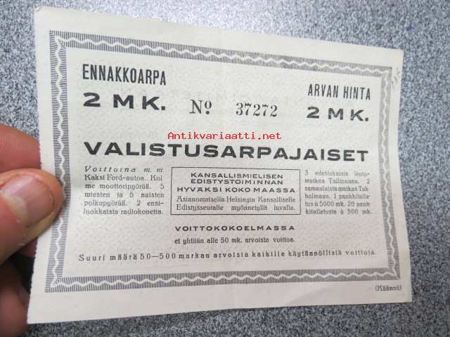Valistusarpajaiset Kansallisen edistystoiminnan hyväksi Ennakkoarpa nr 37272