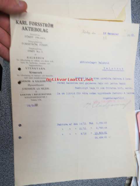 Karl Forsström Ab, Förby 19.12.1921 -asiakirja