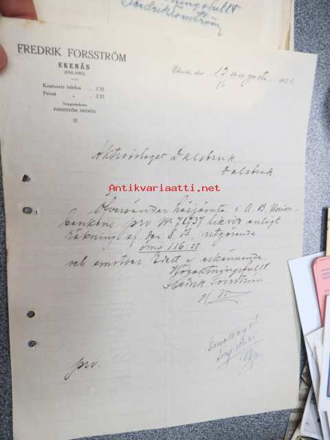 Fredrik Forsström, Ekenäs 13.8.1921 -asiakirja