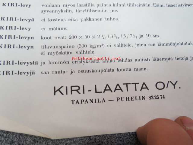 Kiri-levy -esite (Kiri-laatta Oy, Tapanila)
