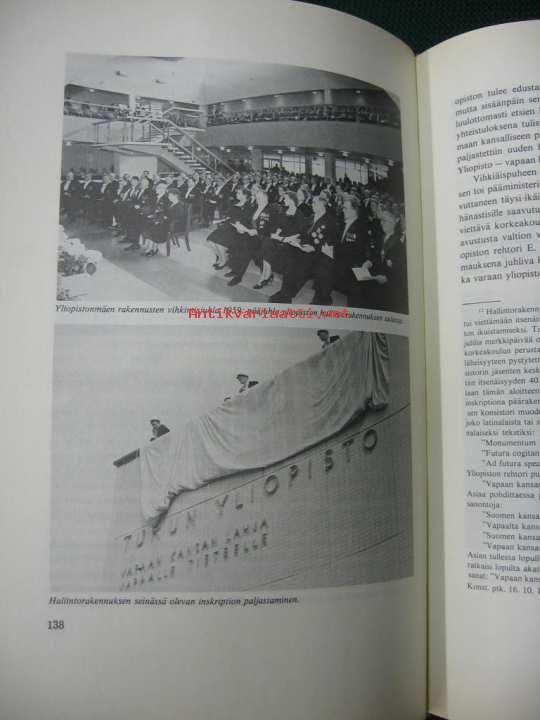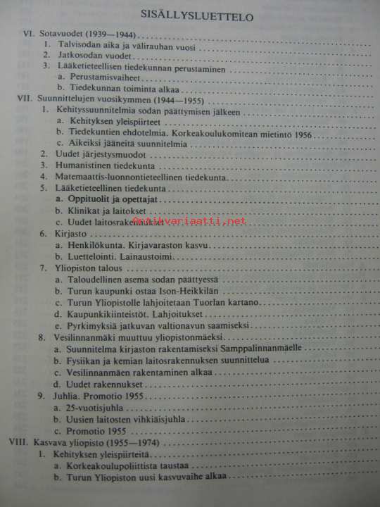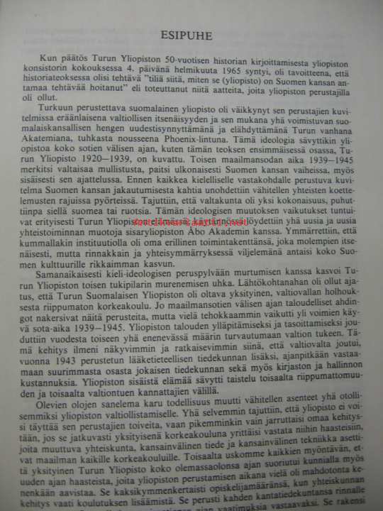 Turun Yliopiston historiikki vuodet 1939-1974, sis. mv valokuvia.