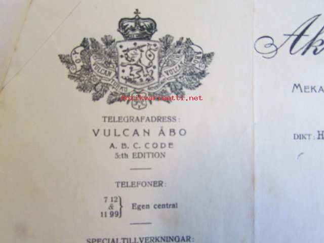 Aktiebolaget Vulcan Åbo, 24. september 1921 -asiakirja