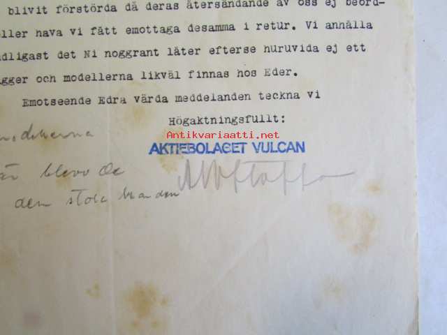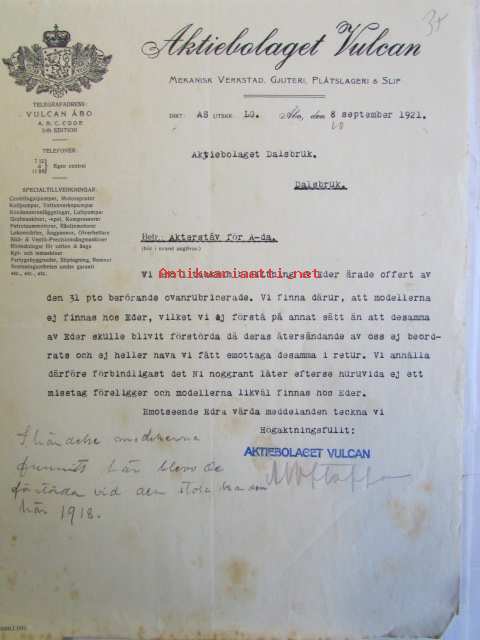 Aktiebolaget Vulcan Åbo, 8. september 1921 -asiakirja
