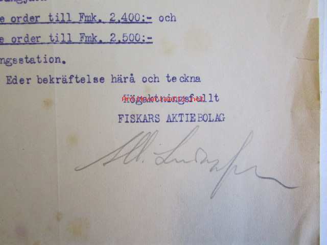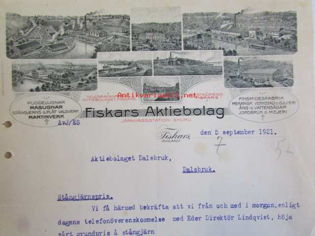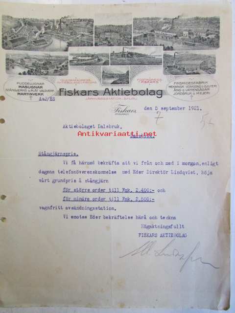 Fiskars Aktiebolaget, den 5 september 1921 -asiakirja