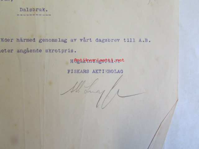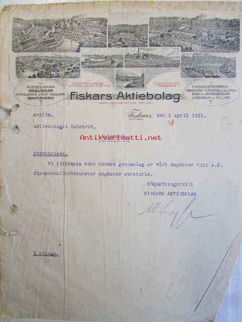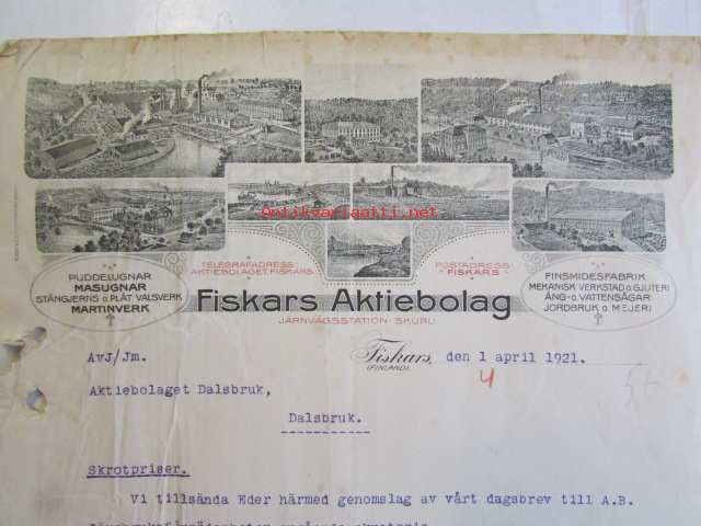 Fiskars Aktiebolaget, den 1 april 1921 -asiakirja