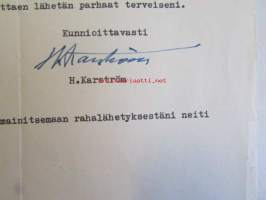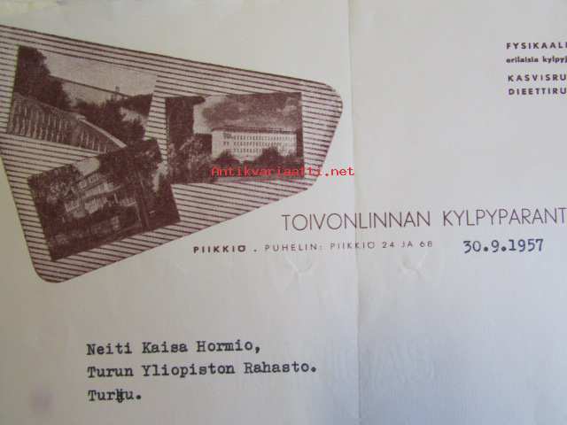 Toivonlinnan kylpyparantola, 50-vuotispäivän 1000,00 markan lahja, 30.9.1957 -asiakirja