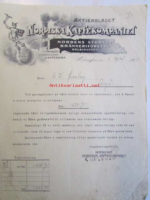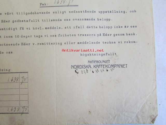 Nordiska Kaffekompaniet, Helsingfors 5 april 1928 -asiakirja