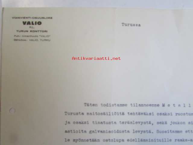 Voinvienti-Osuusliike Valio Turussa 5. joulukuuta 1940 -asiakirja