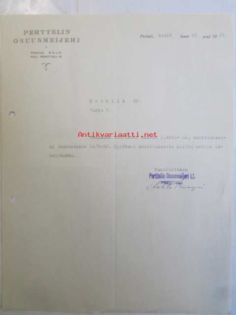Perttelin Osuusmeijeri, Pertteli heinäkuun 25. 1939 -asiakirja