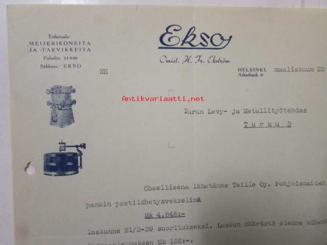 Ekso, Helsinki maaliskuun 23. 1939. -asiakirja