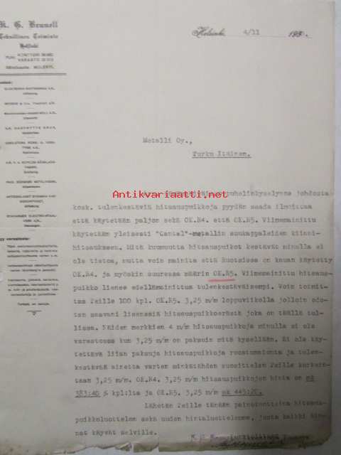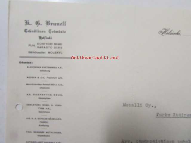 K.G. Brunell Teknillinen toimisto, Helsinki 4/11 1930. -asiakirja