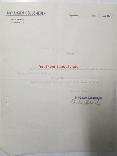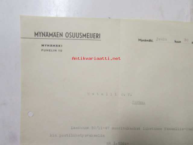 Mynämäen Osuusmeijeri, Mynämäki joulukuun 30. 1947 -asiakirja