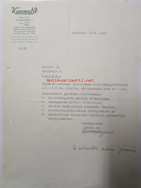 Kummos Oy, Pitäjänmäki 11.8. 1947 -asiakirja