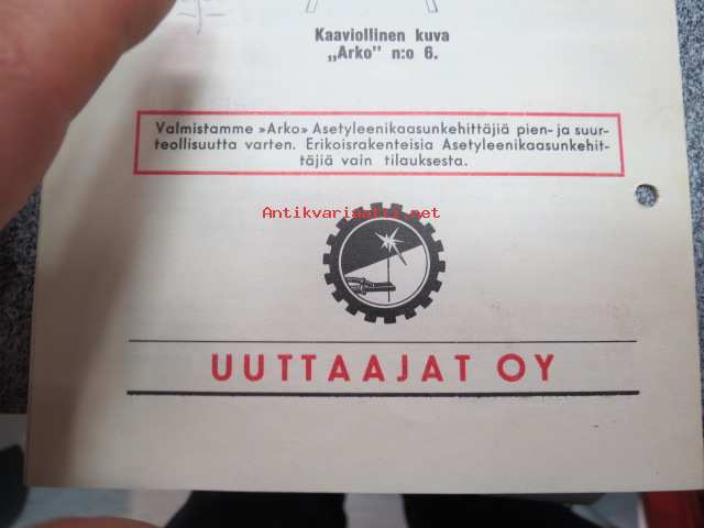 ARKO asetyleenikaasunkehittäjä -myyntiesite
