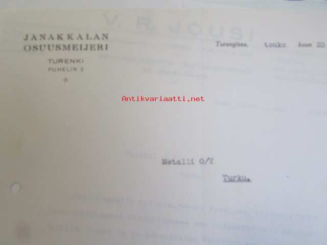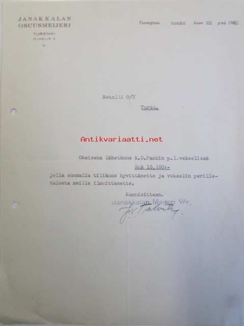 Janakkalan Osuusmeijeri, toukokuun 23. 1940 -asiakirja