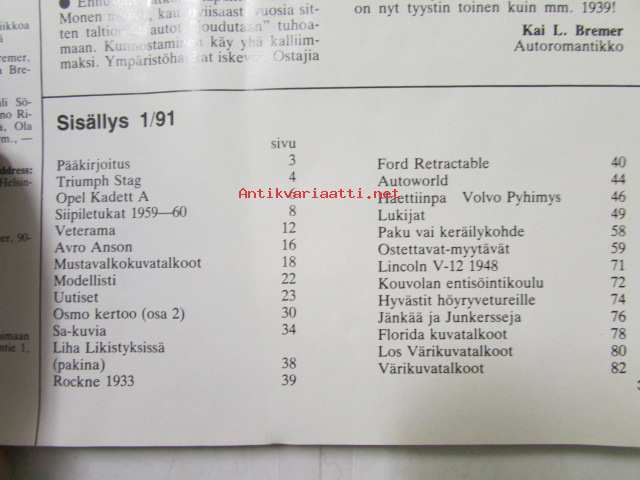Mobilisti 1991 nr 1 -Lehti vanhojen autojen harrastajille, sisällysluettelo löytyy kuvista.