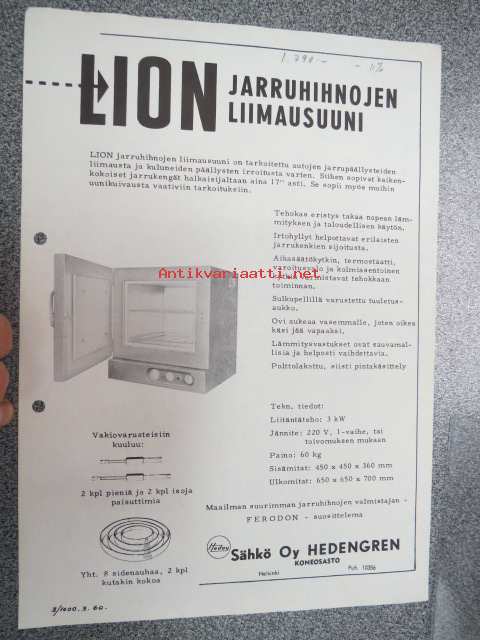 Lion jarruhihmnojen liimausuuni -myyntiesite