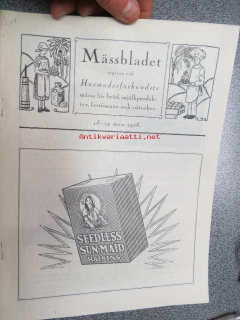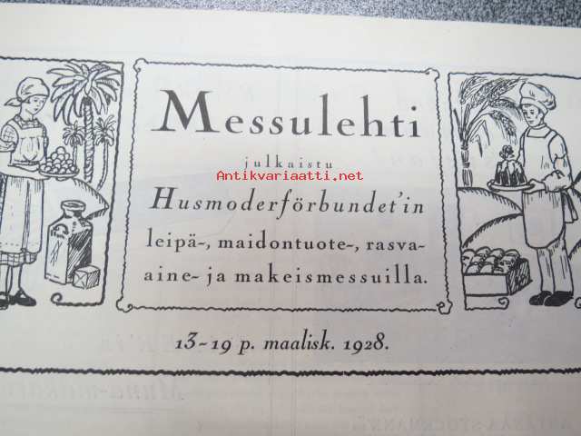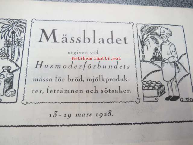 Messulehti julkaistu Husmoderförbundet´in leipä-, maidontuote-, rasva-aine- ja makeismessuilla 13-19 p. maaliskuuta 1928 - Mässbladet utgiven vid Husmoderförbundets mässä för bröd, mjölkprodukter, fettämnen och sötsaker