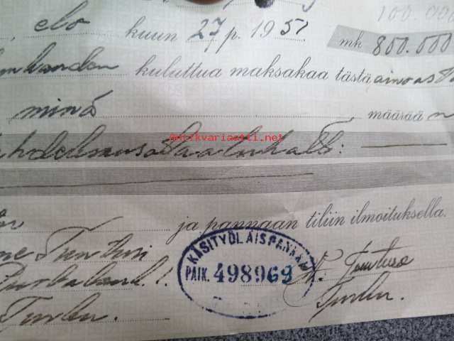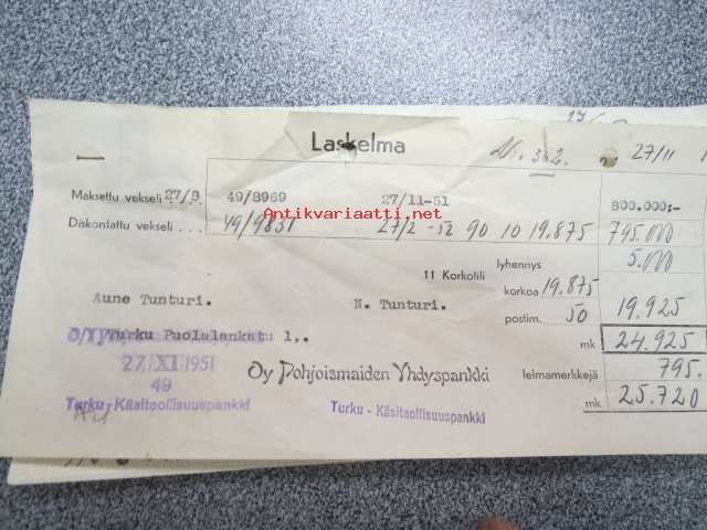 Vekselilomake leimamerkein, Turku 27.8.1951