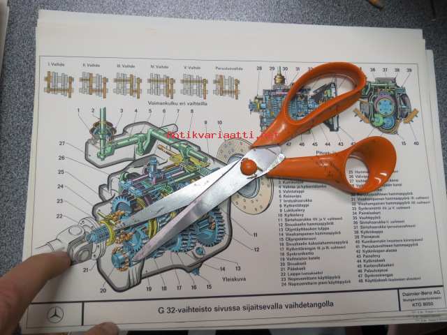 Mercedes-Benz G-32-vaihteisto sivussa sijaitsevalla vaihdetangolla -tehtaan havaintokuva asentajakolutukseen
