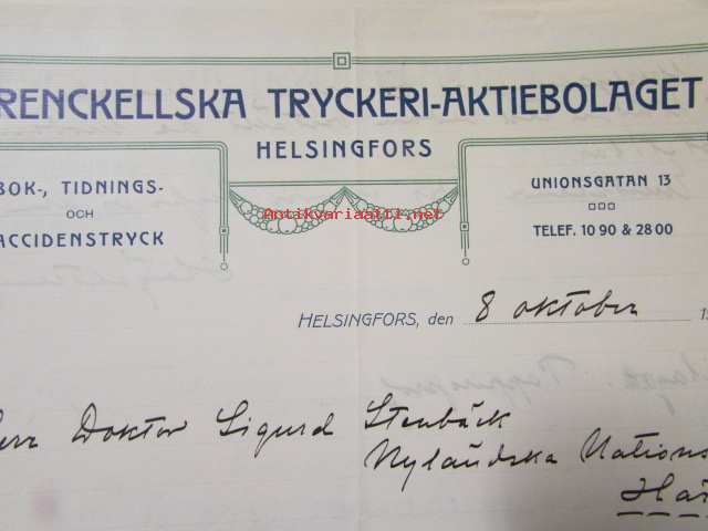 Freckellska Tryckeri-Aktiebolaget 8. okt. 1912. -asiakirja