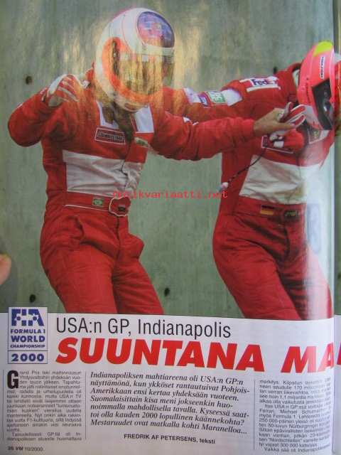 Vauhdin Maailma 2000 nr 10 -mm. Formula 1 MM Belgia, Italia ja USA, Karting-MM Portugali Kovalainen ajoi historiaan, Rata-SM Alastaro ja Hämeenlinna