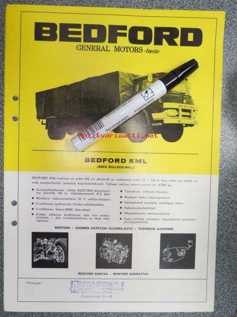 Bedford KML järeä Bulldog-malli -myyntiesite