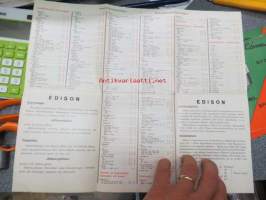 Fazerin Musiikkikauppa - lyhytluettelo; Pienoispiano, Kangasala-Fazer urkuharmoonit, Viulut, Kanteleet, Banjot, His Masters Voice matkagramofoneja, HB-Harmonikkoja