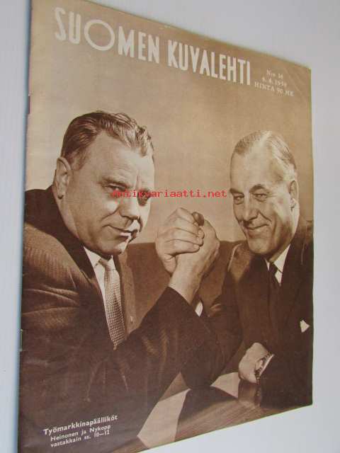 Suomen Kuvalehti 1959 nr 14 4. huhtikuu 1959 , Aiheita mm. Länteen myös - Tampereen veturitehtaalla valmistunut 1904 halkolämmitteinen Tk 2 sarjan veturi nr 418 lähti matkalle rapakon taakse, päättyykö Dalai Lamain ketju?, voittajamme Espanjassa (Aino Kymäläinen, Aira Rämö ja Sakari Höri) Artek mainos nojatuoli nr 418 suunnittelu Antti Nurmesniemi