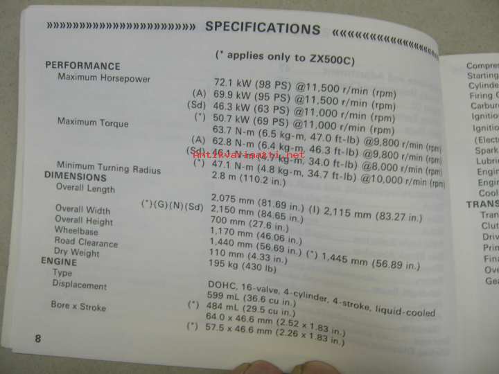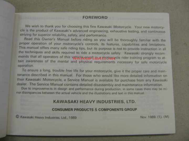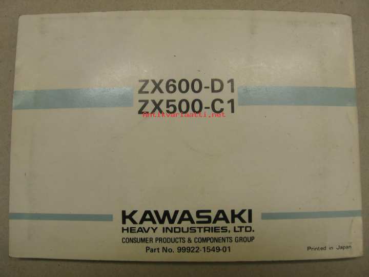 Kawasaki ZZ-R600-D1 ZZ-R500-C1 -käyttöohjekirja englanniksi