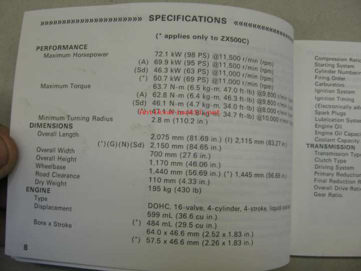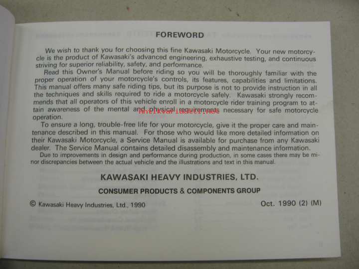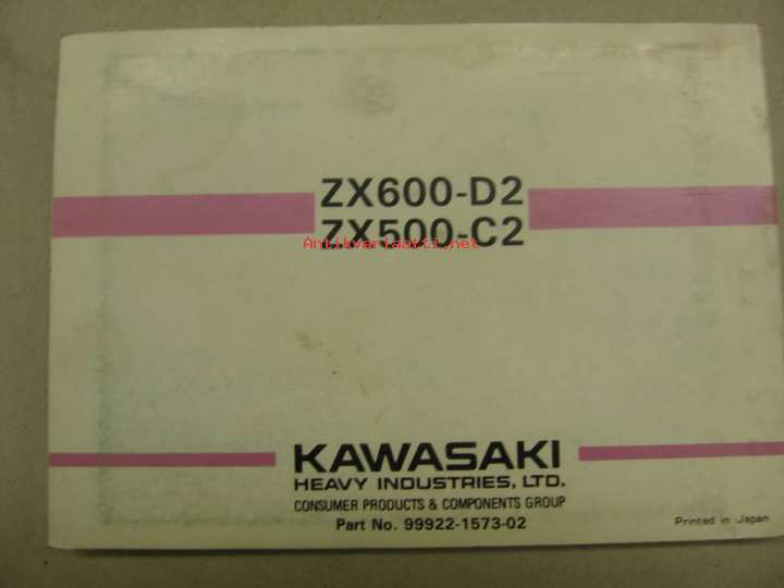 Kawasaki ZZ-R600-D2 ZZ-R500-C2 -käyttöohjekirja englanniksi