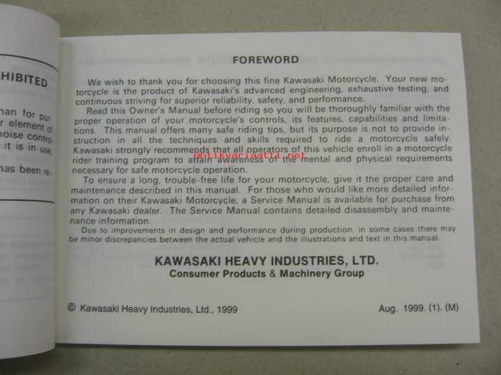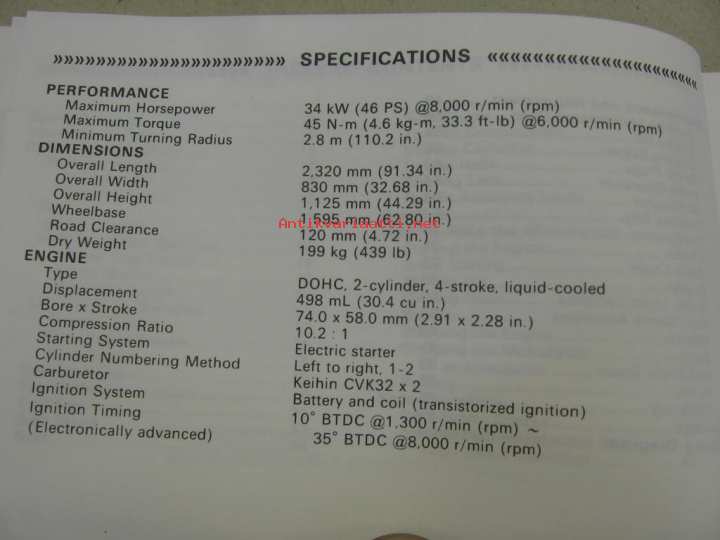 Kawasaki EN500-C4 -käyttöohjekirja englanniksi