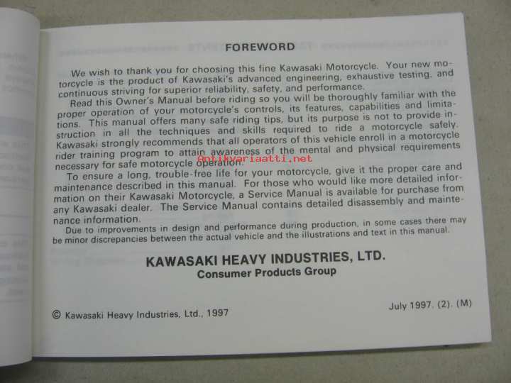 Kawasaki Versys Owner´s Manual, Manuel du proprietaire, Betribsanleitung -moottoripyörä, käyttöohjekirja englanniksi, ranskaksi, saksaksi