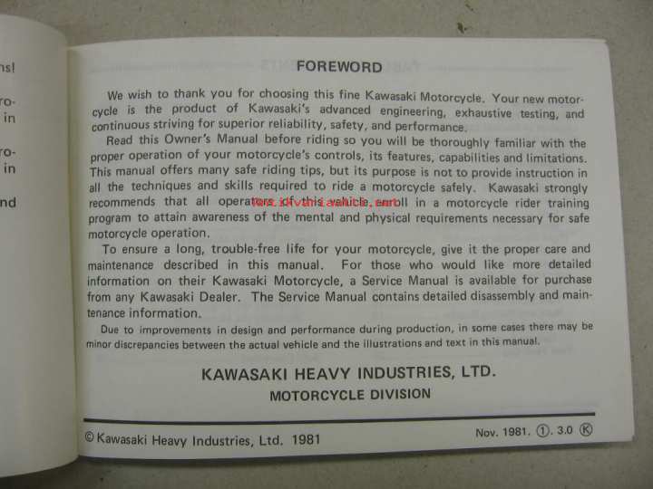 Kawasaki Ninja Z750GP (Z750-R1) owner´s manual -käyttöohjekirja englanniksi