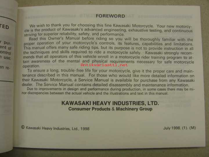 Kawasaki ZRX1100 (ZR1100-C3, ZR1100-D3) owner´s manual -käyttöohjekirja englanniksi