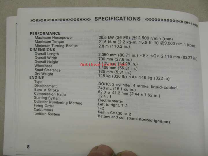 Kawasaki ZZ-R250 (EX250-H2) owner´s manual -käyttöohjekirja englanniksi