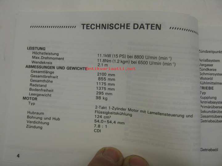 Kawasaki KMX125 (KMX125-B8) betriebsanleitung -käyttöohjekirja saksaksi