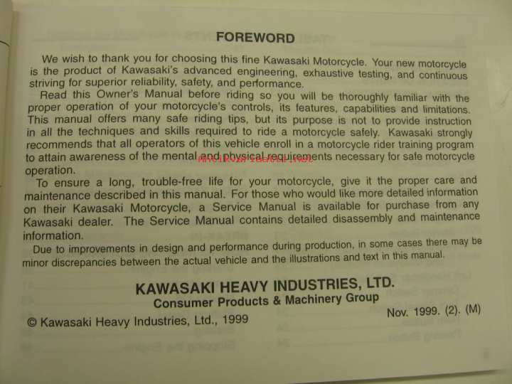 Kawasaki Ninja ZX-6R (ZX600-J1) Owner´s manual -käyttöohjekirja englanniksi