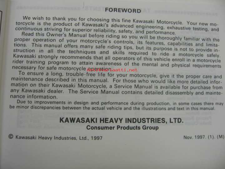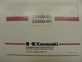 Kawasaki Ninja ZX-6R (ZX600-G1 ZX600-H1) Owner´s manual -käyttöohjekirja englanniksi