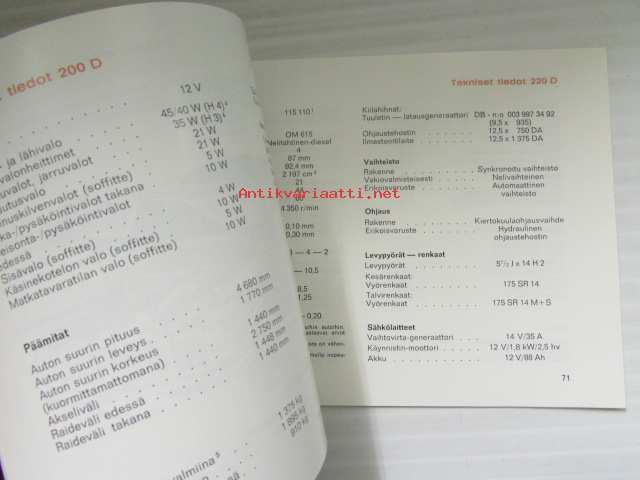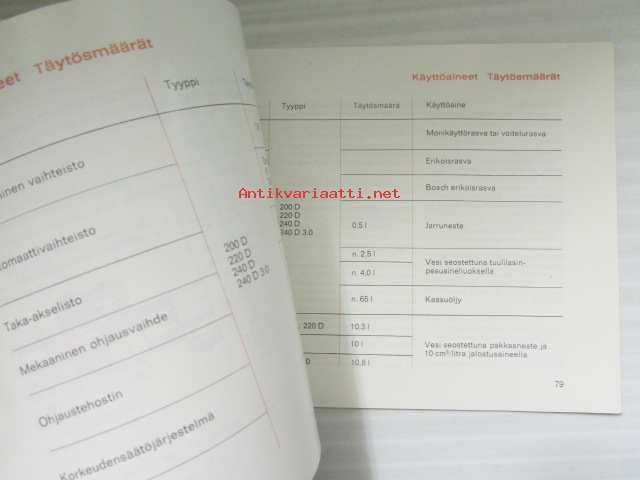 Mercedes-Benz 200 D, 220 D, 240 D, 240 D 3.0, 115 D Käyttöohjekirja