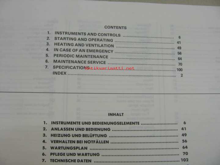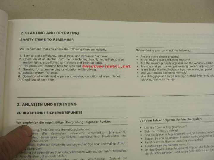 16 x 26 cm omistajan käsikirja englanniksi, saksaksi, ranskaksi ja hollanniksi.