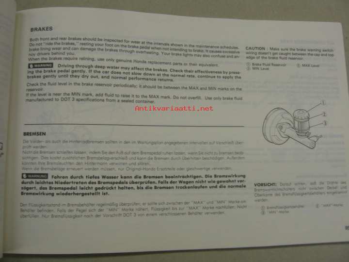 Honda Civic Coupe CRX -owner´s manual käyttöohjekirja