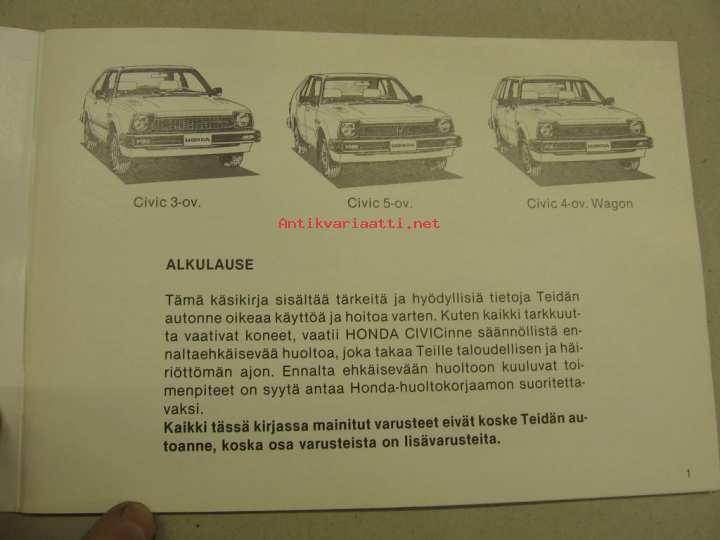 Honda Civic 3D / 5D / Wagon -käyttöohjekirja