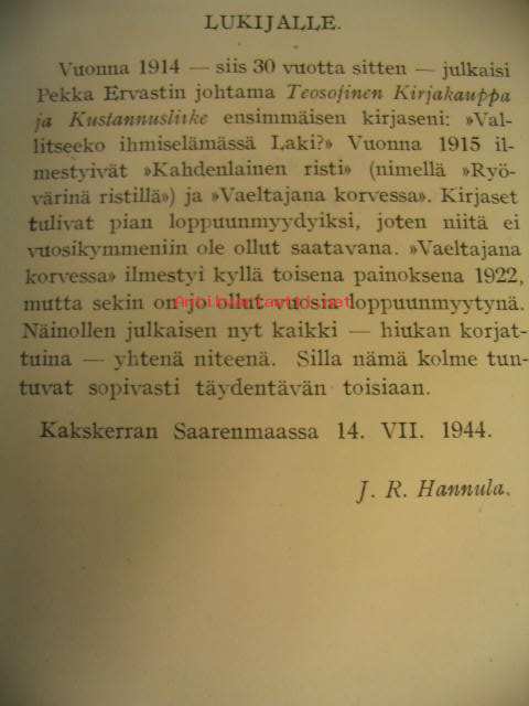 Hannula J. R., P. E:n kannatusliitto, 1944