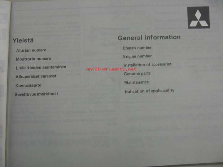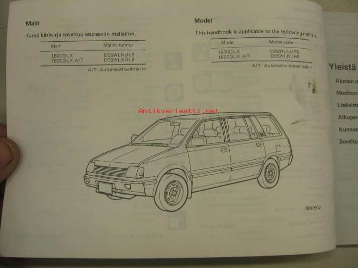 Mitsubishi Space Wagon 1985 -käyttöohjekirja